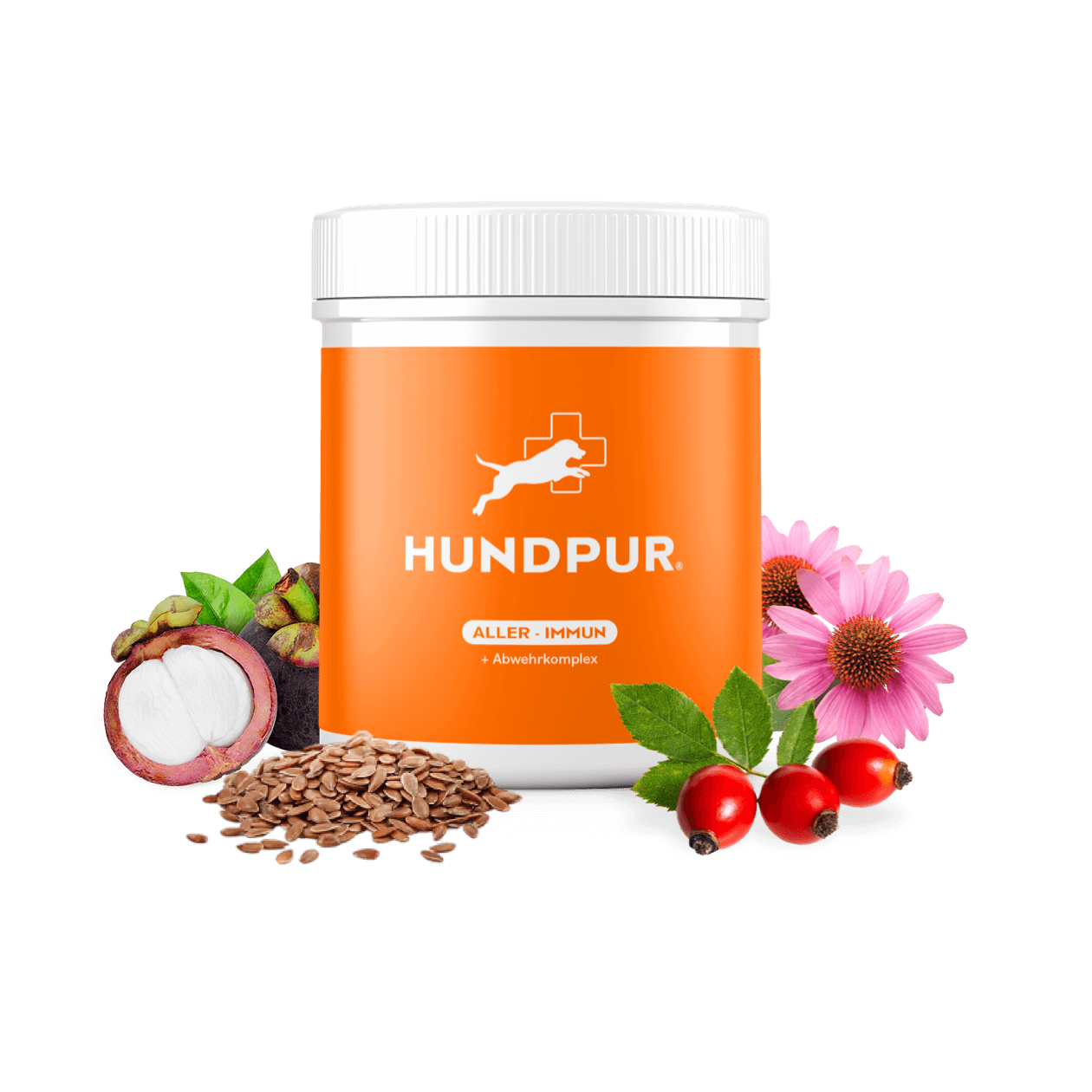 Hundpur® Aller-Immun kann Deinen Hund mit natürlichen Inhaltsstoffen wie Propolis und Kurkuma saisonal unterstützen. Hundpur® Aller Immun mit Abwehrkomplex kann ernährungsbedingten Mangelerscheinungen entgegenwirken und das allgemeine Wohlbefinden Deines Vierbeiners fördern.